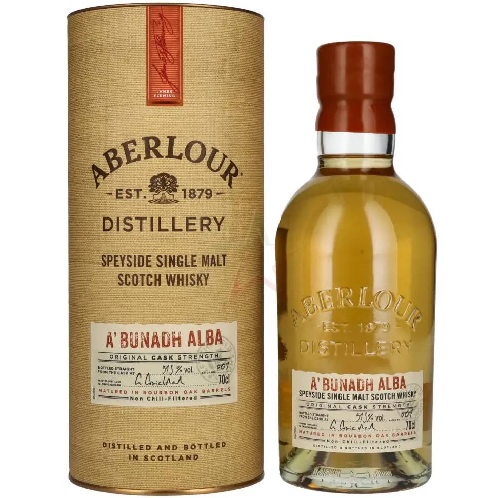 Aberlour A'Bunadh Alba najbliže je što možete doći do doživljaja viskija izravno iz bačve. Koristi samo prvo punjenje bačva od američkog hrasta, sorte Quercus Alba, koja se koristila za izradu bivših burbonskih bačvi u kojima je ovaj viski isključivo sazrijevao kako bi se očuvali intenzivni slatki okusi. Abunadh je jačina bačve, što znači da izlazi iz bačve u kojima je prethodno bio Bourbon viski i puni se bez obzira na gustinu kad se izvadi iz bačve. Idealan dar za Božić, Očev dan, rođendane i druge posebne prigode.